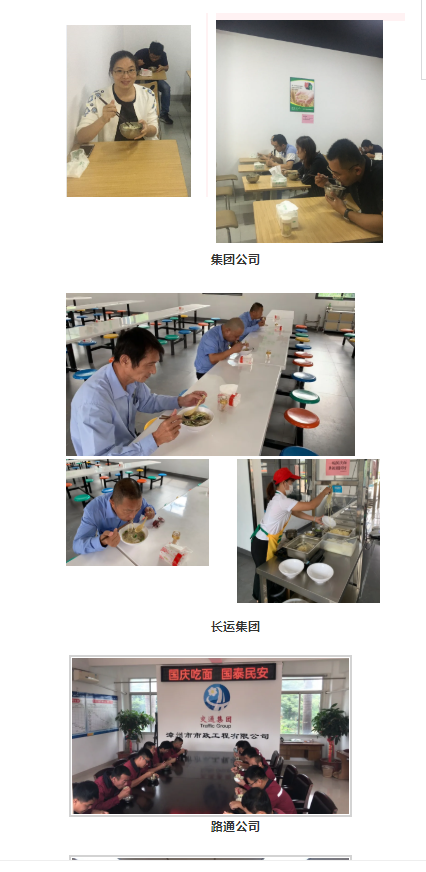為慶祝新中國成立71周年,倡導(dǎo)國慶新民俗,集團(tuán)及所屬各單位組織開展“國慶吃面 國泰民安”主題活動,大家團(tuán)團(tuán)圍坐,吃著一碗碗香噴噴的面,暢談著美好工作與生活。大家深深感受到,今天幸福美好的生活,得益于祖國的繁榮富強(qiáng),也共同祝愿祖國繁榮昌盛、國泰民安!