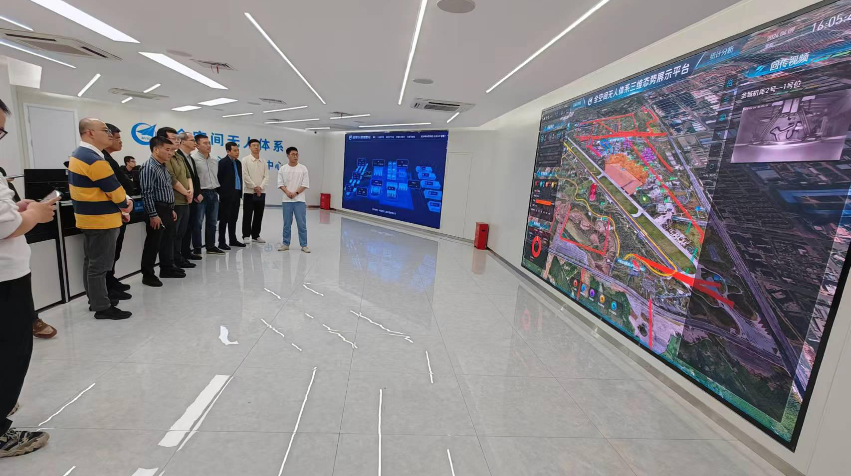 考察組在負(fù)責(zé)人的陪同下觀摩了駱崗公園全空間無人體系,進(jìn)一步了解了無人機(jī)運(yùn)行過程中的管控和調(diào)配方式。