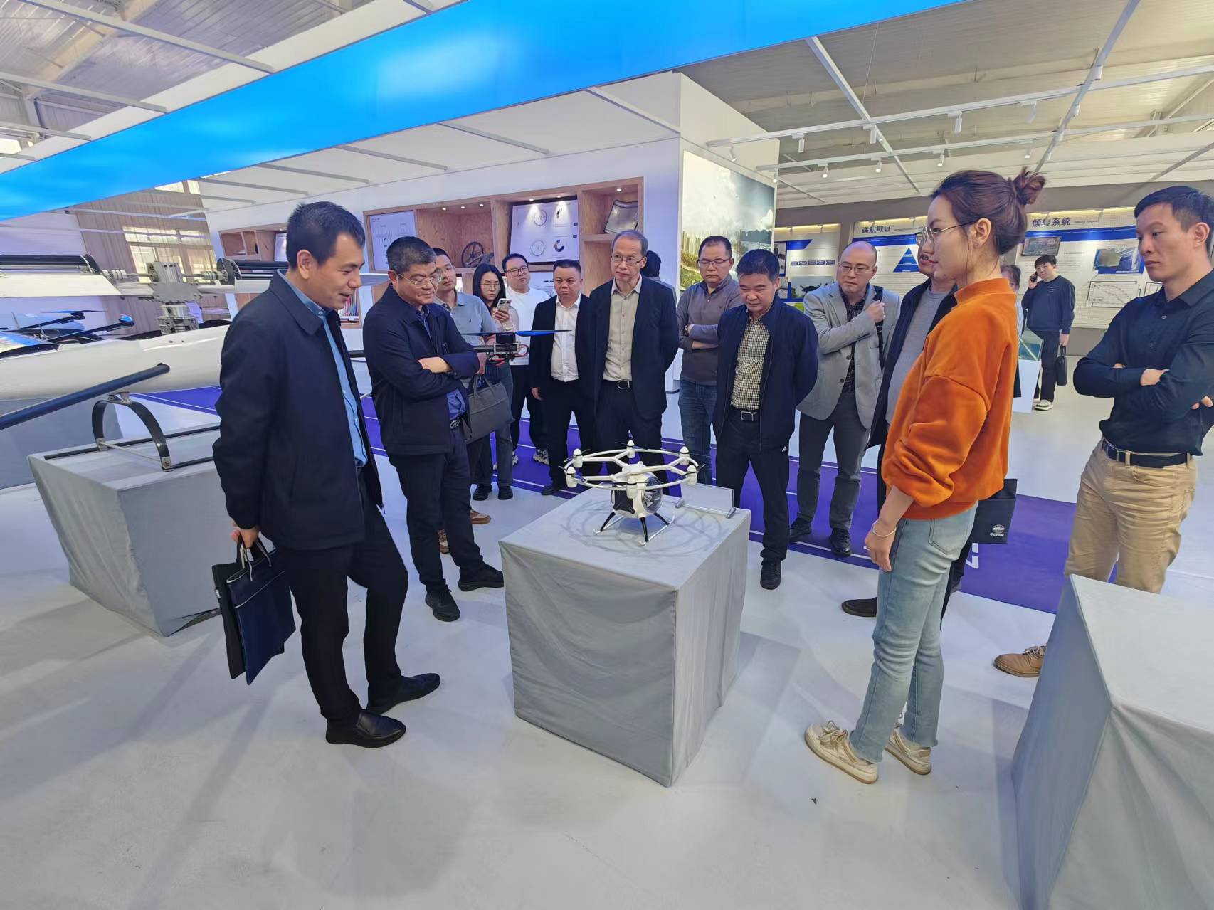 考察組參觀了企業(yè)展廳和總裝空間,工作人員介紹了其生產(chǎn)研發(fā)的不同類型飛行器特點(diǎn)和應(yīng)用場(chǎng)景。