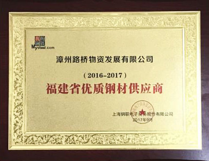 路橋物資公司榮獲“2016-2017年度福建省優(yōu)質鋼材供應商”稱號